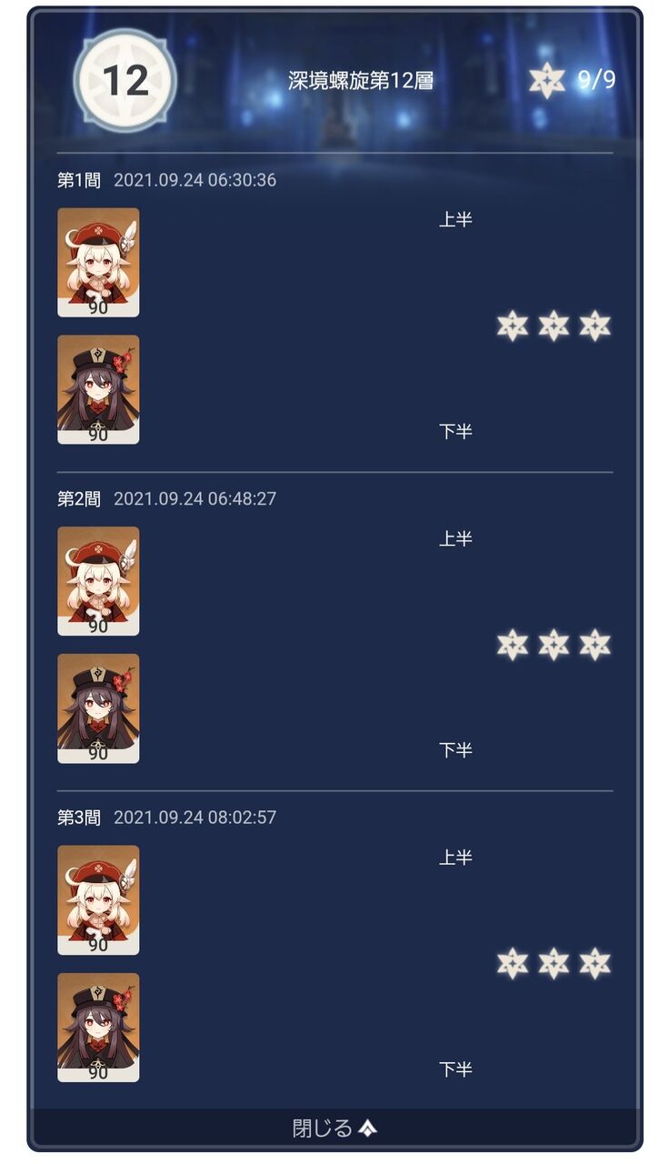 動画伸ばしたいならSpiral Abyss 2.1 Floor 12 9 starsとかタイトルに英語入れた方が良いと思うぞ