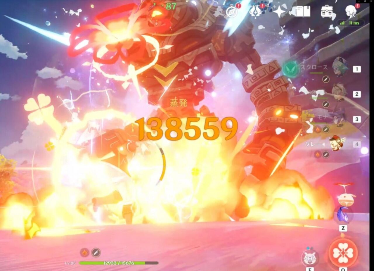 火魔女4武器四風の4凸クレー重撃 バフ:旧貴族4、ベネット爆発、完凸竜殺し、スクロ熟知