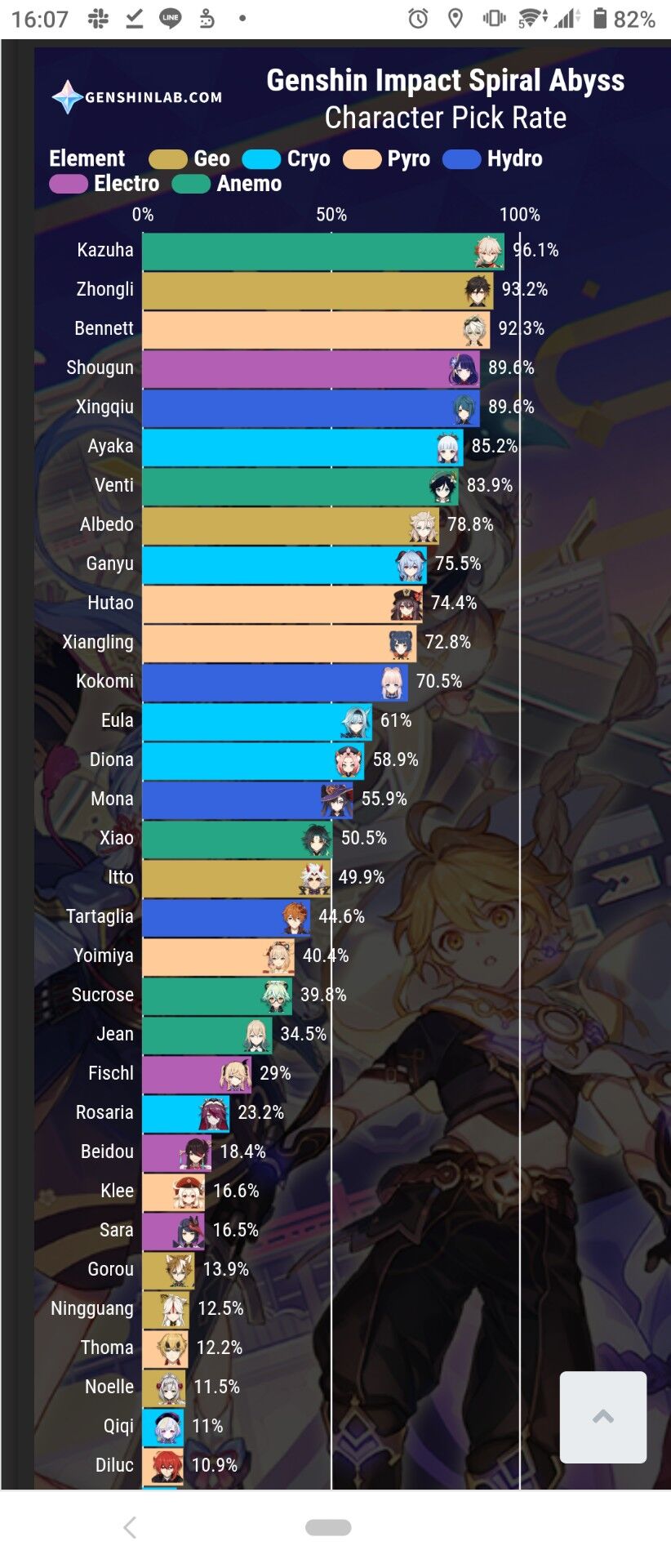 原神において(というかゲーム全般そうだが)サポートキャラの使用率が高めに出るのは当たり前だしな