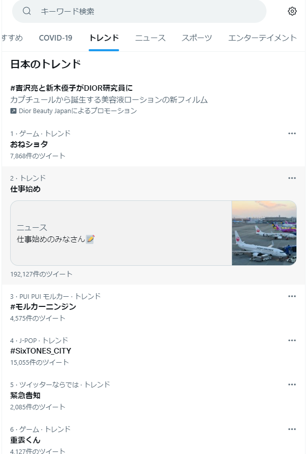 今のツイッタートレンド