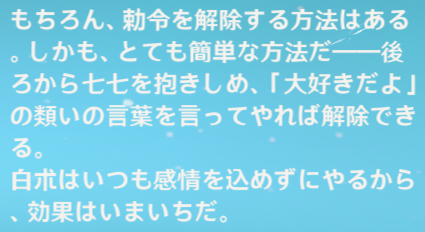 七七が白ポより自分の方が体調がいいと言ってる、キョンシーより体調悪いって相当深刻な病気とか呪いとかありそう