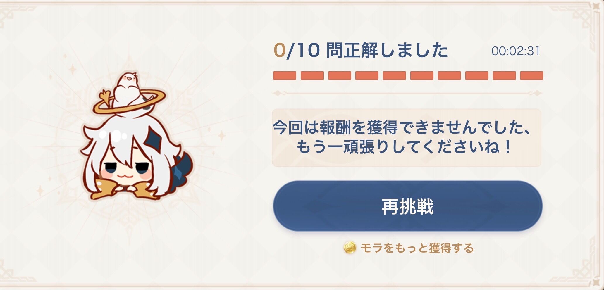 全問不正解だとアチーブ貰えるのがいやらしいな