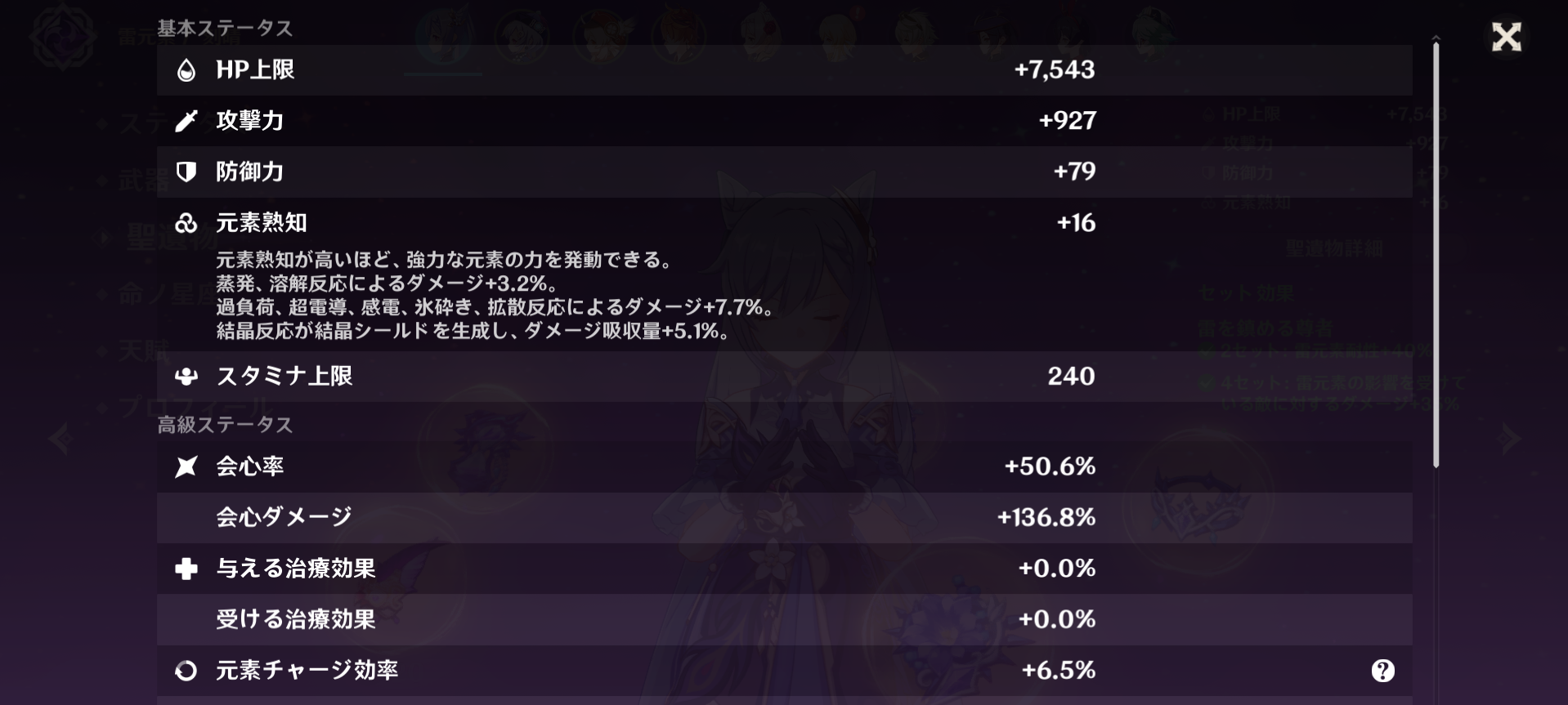 だいぶエグい聖遺物してそう 会心ダメ冠でよく会心率50↑まで上げられたねすごいわ