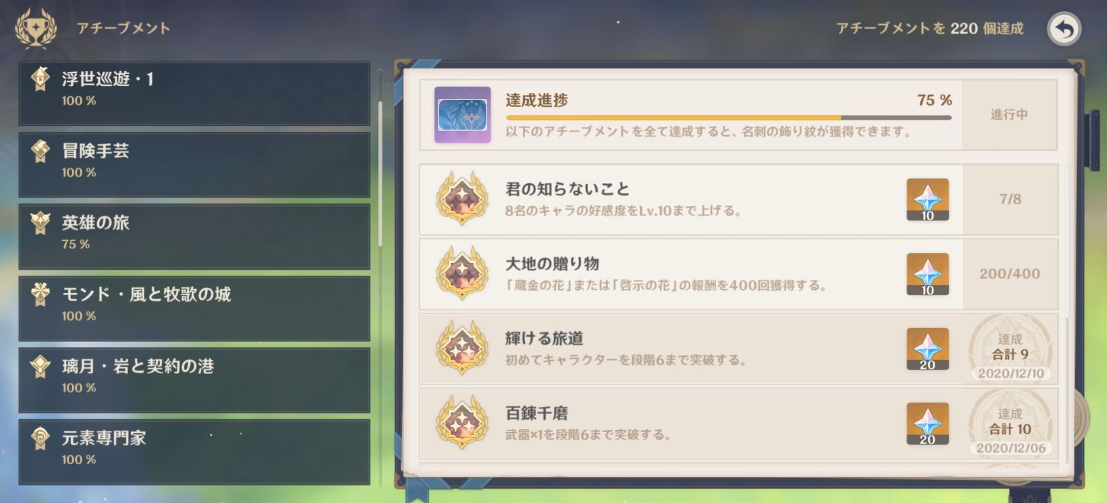 アチブの達成段階は左の光ってるマークの数でわかるぞ