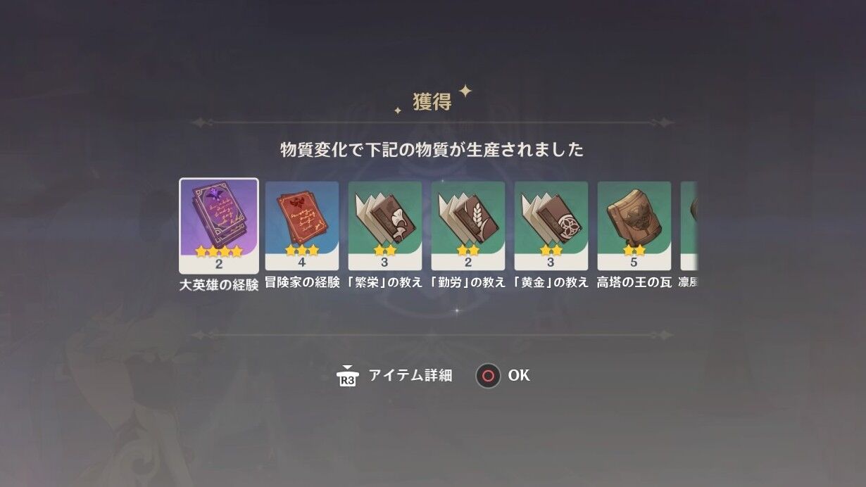 レアリティが高いと消費するアイテムの量が少なくなるだけだと思う