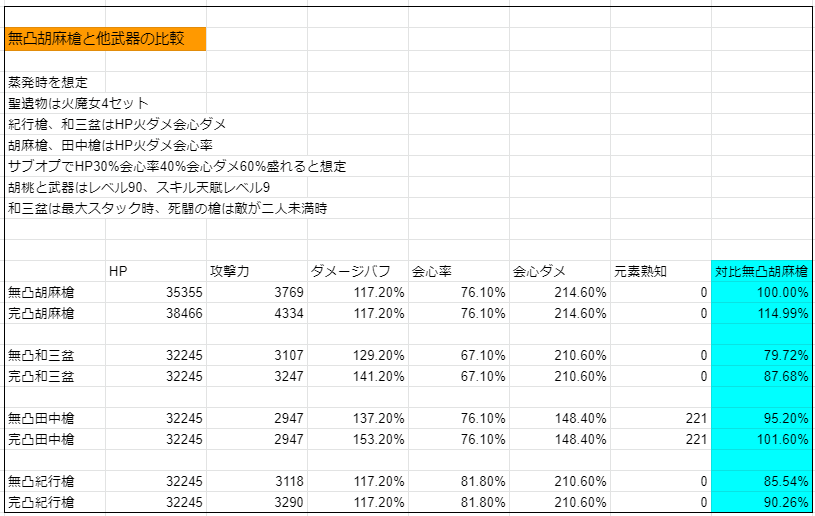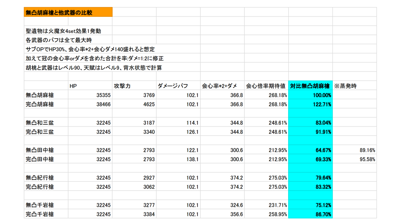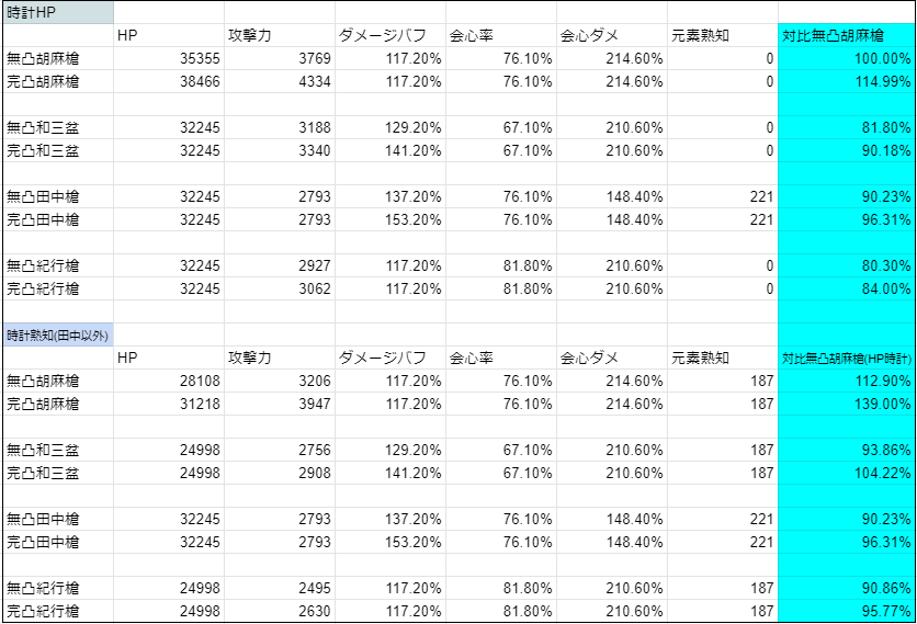 >>295のやつ自分で計算してみたら完凸胡麻のHP参照が無凸時だったり、田中の攻撃が高かったり色々ミスあったよ