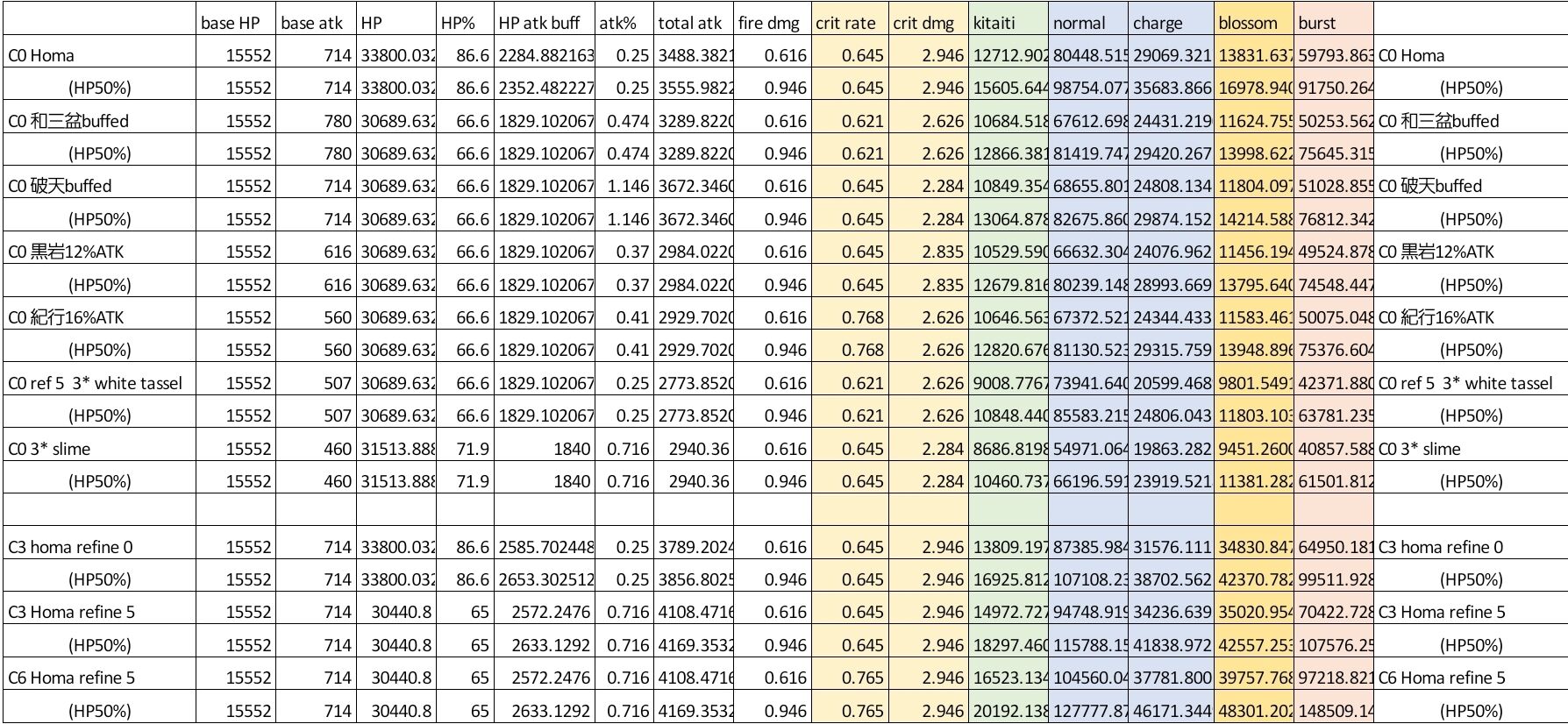 聖遺物セット効果は炎15%のみを想定した。メインはHP%炎バフ会心系が板だと思われる