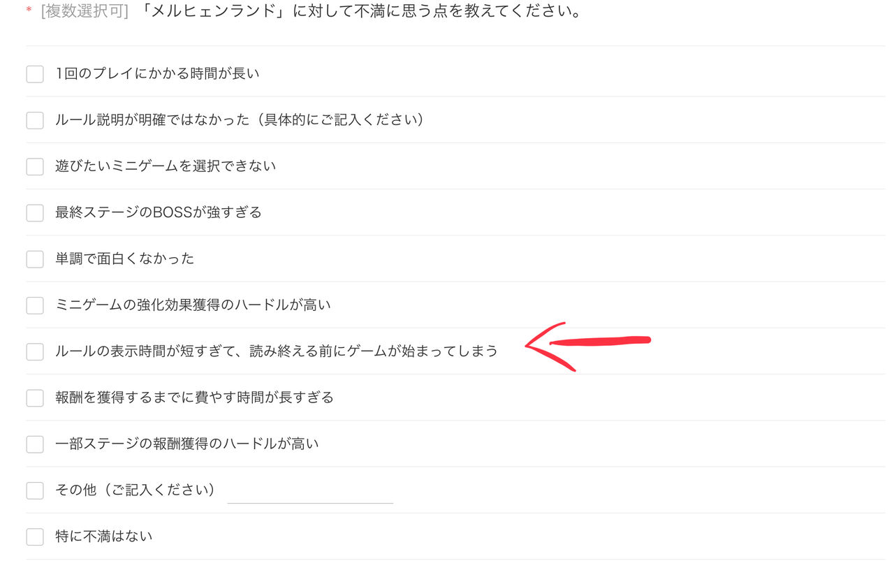 アンケートでメルヒェンの不満点の選択肢にゲームの種類を選べないって項目あったから