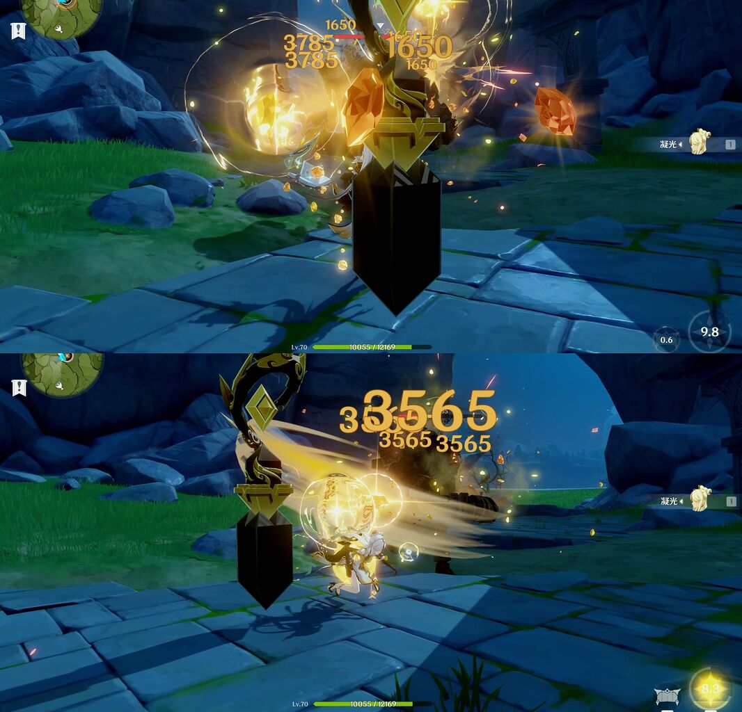 無凸でも上下を一度の元素爆発で出せる(2枚目は全部会心になってるから画像よりはもう少し低くなる)