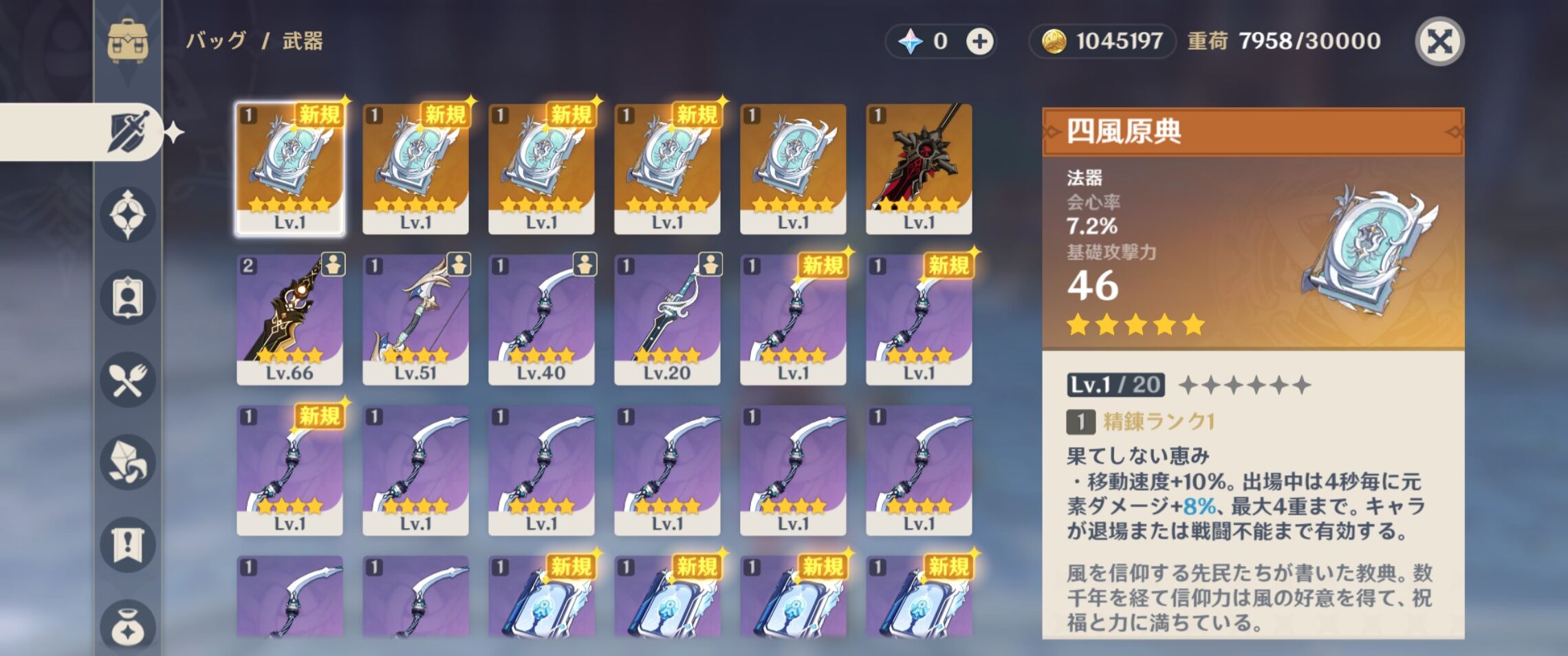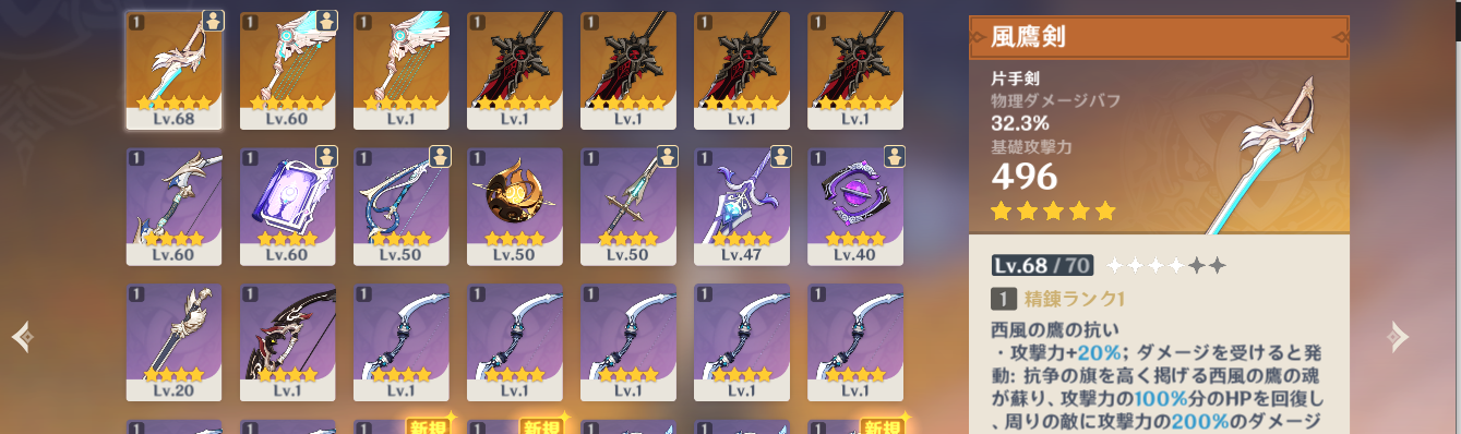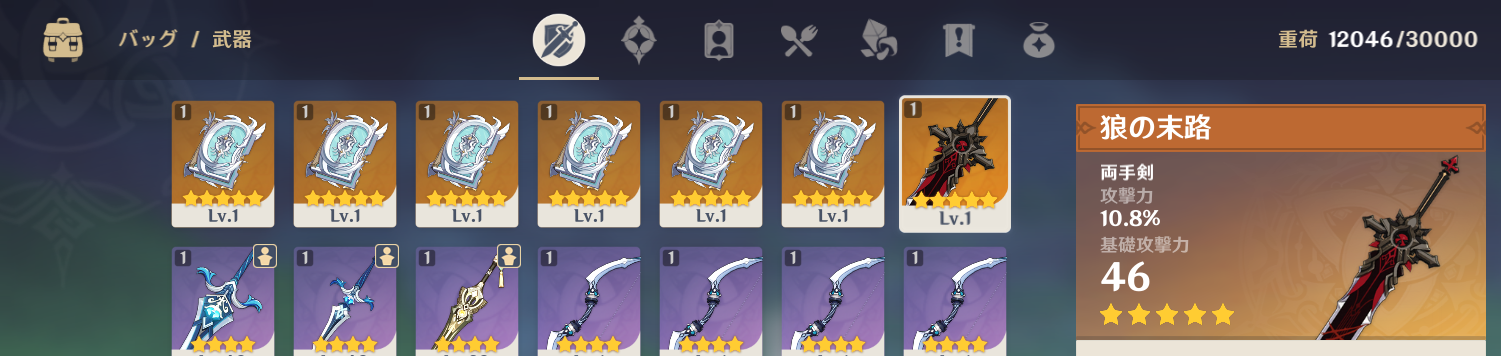武器ガチャ90連で狼1四風1しか出なかったぞ