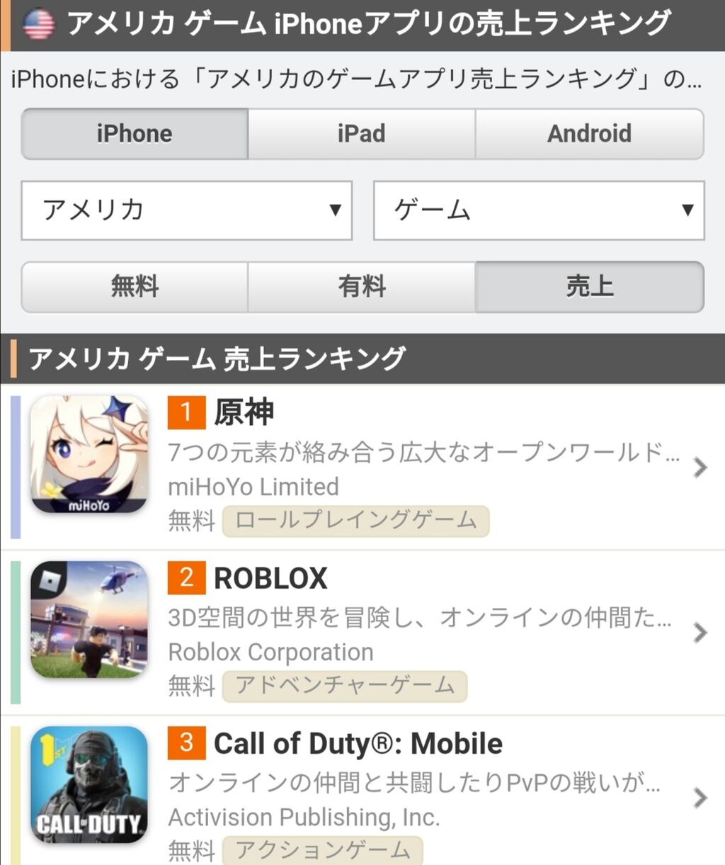 アメリカセルランで調べたら一位だけど何で調べたんだ?