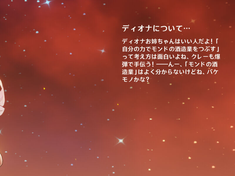 モンドにあるキャットテイルのウェイトレスもやってるとかそんな設定だった筈だからディオナは大人なんでしょ