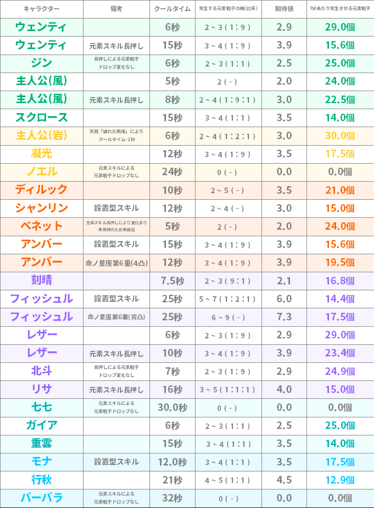 風キャラは拡散がスライム相手に効かない分元素粒子回収は全体的に優秀やね