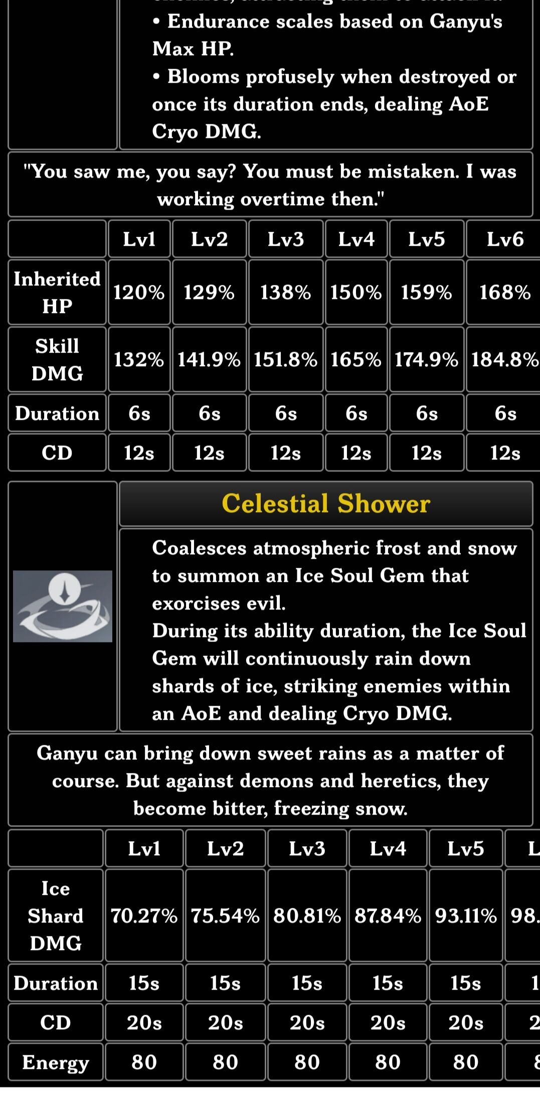 セレスティアルシャワーの半径内のキャラクターは、20%のクライオDMGボーナスを獲得します。