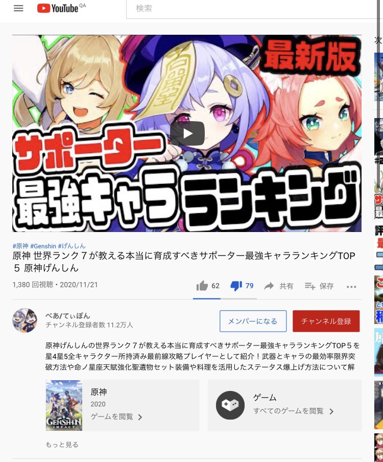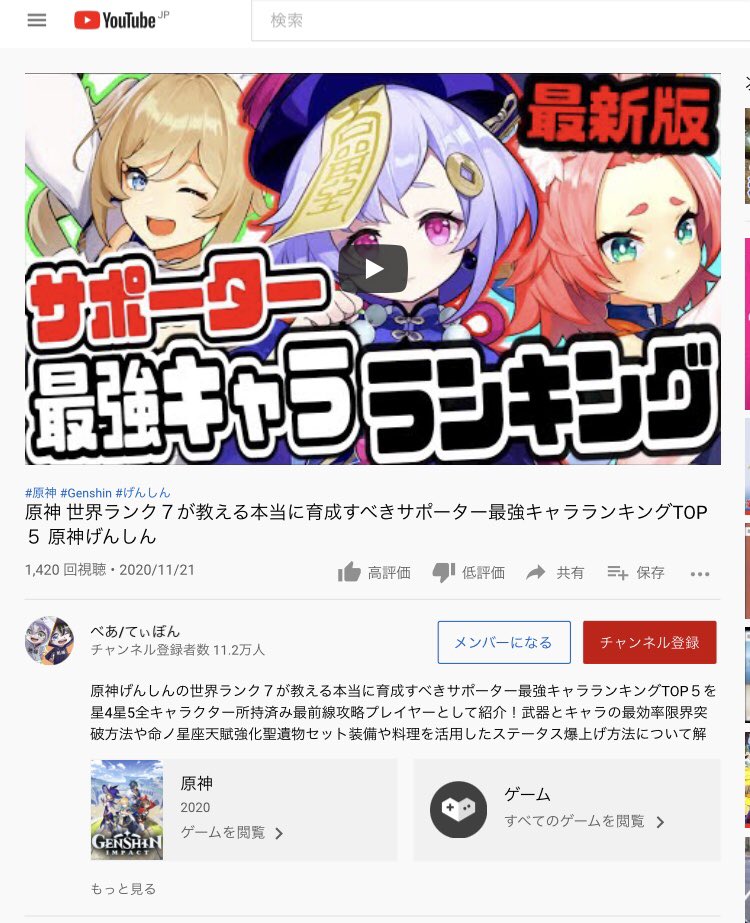 昨日か一昨日の動画は原神ファンとしては許せん。