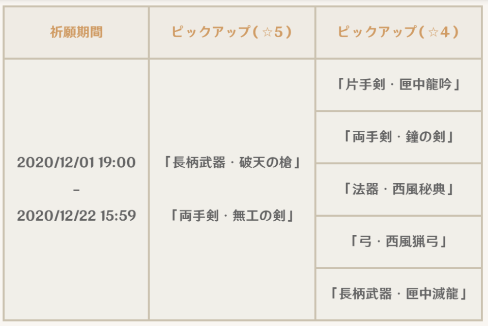 ☆5「長柄武器・破天の槍」「両手剣・無工の剣」